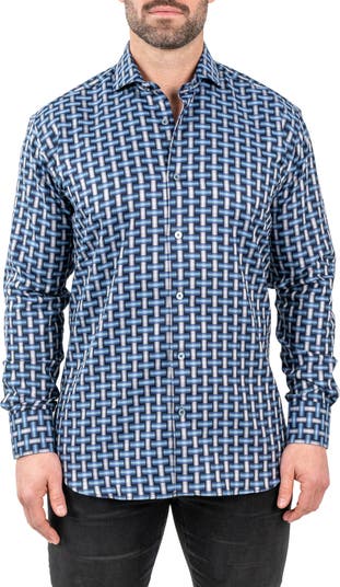 Einstein Jacqdigiweave Blue Contemporary Fit Cotton Blend Button-Up Shirt