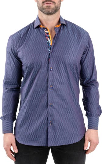 Subtle geometries bring pattern and texture to a shirt tailored from crisp cotton jacquard with a shaped, physique-hugging fit and contrast panels ready to pop when you open the collar or roll up the sleeves.
