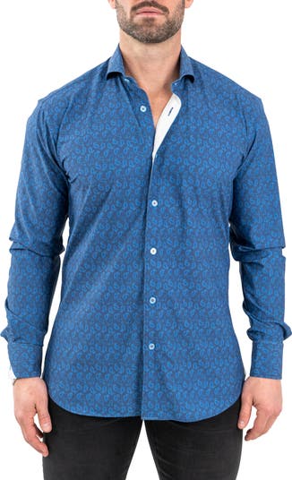 Turn heads in the eye-catching print of this button-up shirt made from a quick-drying, wrinkle-resistant Italian stretch fabric in a fit that's a perfect balance between a regular and trim.