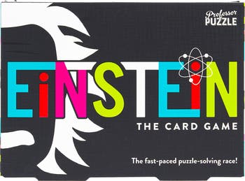 EINSTEIN: THE CARD GAME - Team up or play individually, then race to see who reacts fastest and wins the most cards! With a great mix of visual, number, and word puzzles there’s something to suit every brain in this fast-paced puzzle-solving game. 160 puzzle cards featuring 8 different categories. Challenge cards cover a range of difficulty levels, making it fun for a wide audience. Competitive play. Test your logical thinking, problem solving, mathematical and literary skills. THE EINSTEIN COLLECTION: In 1905 Einstein’s extraordinary thinking and unique perspective changed the way we viewed space, time, and energy. He also opened the world’s eyes to the power of his phenomenal brain. Few people on this planet wouldn’t know that name, recognize his image, or associate him with superior intelligence. So, what better muse to inspire a collection of puzzles … and what better way to test our own brainpower than to try to solve them? Play this set with Einstein: The Board Game for a full gaming experience.