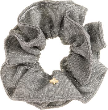 A metallic scrunchie adds a playful touch and elegant luster to your updo while keeping your tresses in place.