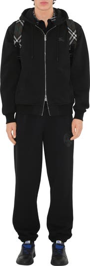 A zip hoodie in lightweight loop-back cotton, cut to a relaxed fit. The print at the back is inspired by a Burberry catalogue from the first half of the 20th century and features our Equestrian Knight Design surrounded by the words 'Burberry Protection' – a nod to our long-standing tradition of crafting innovative outerwear for explorers and pioneers.||Two-way zip closure|Drawcord hood|Pouch pockets|Rib-knit trims|Printed Equestrian Knight Design at chest