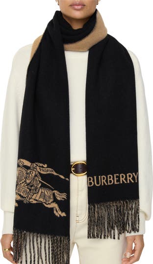 A scarf in cashmere, jacquard-woven with the Equestrian Knight Design and our logo. Brushed for an ultra-soft finish. ||Rectangular |Fringing at both ends |Jacquard-woven Burberry lettering