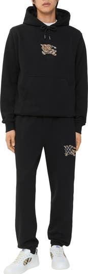Jogging pants in lightweight loop-back cotton, cut to a slim fit. The style is embroidered with our logo and Equestrian Knight Design on a Burberry Check backdrop in signature sand beige.||Interior drawcord waist|Side slip pockets, back patch pocket|Embroidered Burberry lettering at front