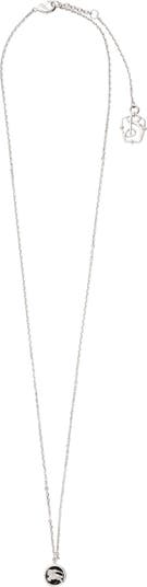 An adjustable chain-link necklace made in Italy from brass with palladium plating. The slender chain is detailed with a hand-cut onyx disc topped with our Equestrian Knight Design.
