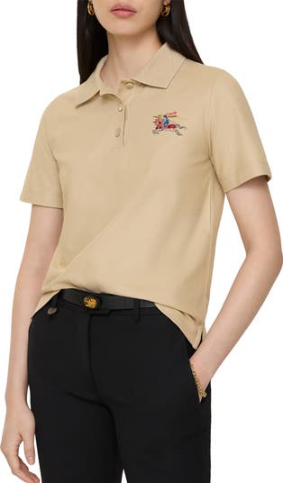 A polo shirt in lightweight cotton piqué, cut for a regular fit. Created as part of our Year of the Horse capsule, the style is embroidered with textural, metallic threads playfully reimagining our Equestrian Knight Design.||Button placket|Rib-knit collar