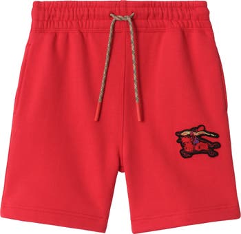 Shorts made from loop-back cotton in a seasonal crayon red – created as part of our Year of the Horse capsule. The style features a Burberry Check drawcord and embroidered appliqué – the motif reworks a seasonal sketch of our Equestrian Knight Design and is detailed with metallic threads.||Elasticated drawcord waist|Side slip pockets|Appliquéd Equestrian Knight Design at front
