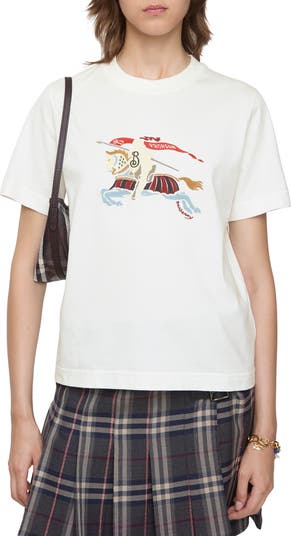 A T-shirt made from cotton jersey, cut to a relaxed fit. The style is embroidered with a colourful take on our Equestrian Knight Design.||Rib-knit neckline|Embroidered Burberry lettering at front