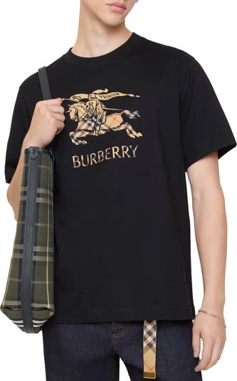 A T-shirt made from lightweight cotton jersey, cut to a slim fit. The crew-neck style is printed with our logo and Equestrian Knight Design filled with an ombré Burberry Check.||Rib-knit neckline|Printed Burberry lettering at chest