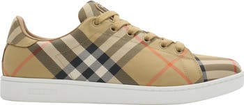 An Equestrian Knight Design logo patch in rich suede adds a house-signature touch to the tongue of this elevated sneaker covered with unmistakable checks.