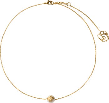 An adjustable chain-link necklace made in Italy from brass with gold plating. The slender style features our B charm and a freshwater pearl decorated with the Equestrian Knight Design. Please note, due to natural formation each freshwater pearl is one of a kind and may vary from the item photographed.| |Clasp closure |B-shaped charm|Comes with a dust bag