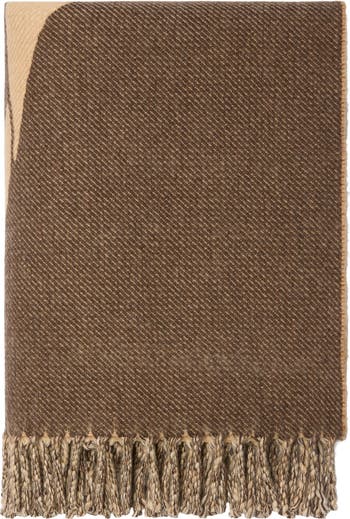 A blanket crafted from wool cashmere at a Scottish mill founded in 1797. The style is detailed with a textured Equestrian Knight Design in a heavyweight jacquard weave.||Rectangular|Fringing at both ends