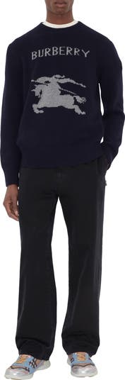 An Italian-made sweater in heavyweight wool cashmere, knitted with a contrasting Equestrian Knight Design and logo. The crew-neck style is cut to a regular fit.||Rib-knit trims|Knitted Burberry lettering at front