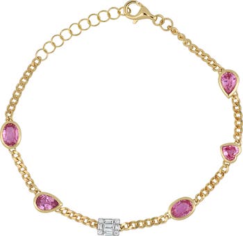 Delicate stations of diamonds and pink sapphires add stunning contrast to this polished bracelet handcrafted from 18-karat gold.