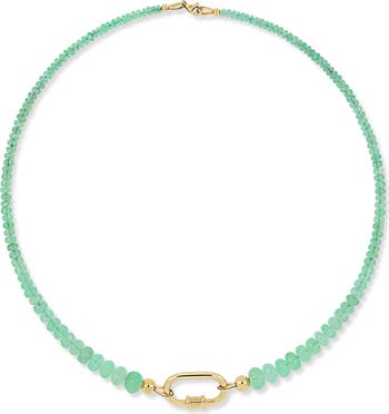 This handcrafted necklace adds the serene color of 142 faceted emerald beads to your look, while 14-karat gold center hardware brings an element of gleam to the majestic sparkle.