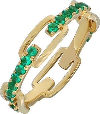 Streams of rich emeralds bridge 18-karat gold links in this handcrafted ring inspired by the deep greens of the sea.