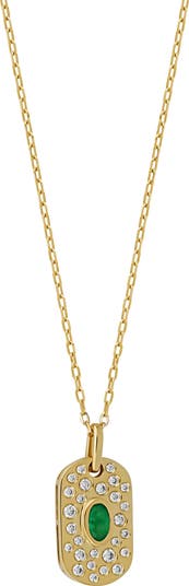 Inset diamonds frame a central emerald like sunlight on the surf in this handcrafted pendant necklace inspired by the ocean.