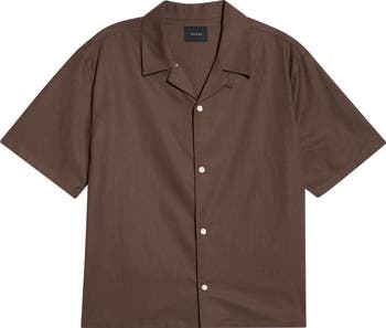 You'll be feeling breezy all day in this cotton-and-linen camp shirt featuring a convertible collar.