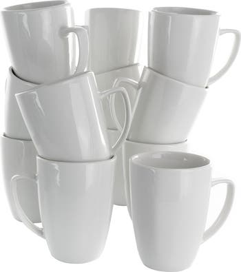 Timeless and fresh, the Elama Riley 12 Piece Porcelain Mug set is sure to make your next sip special. Whether you're looking for a coffee mug or a tea cup, this beautiful white 12 Ounce Porcelain mug set is perfect for every day use. Gather up your family and friends, this 12 piece set is also ideal for gatherings and special occasions. Constructed of strong and durable Porcelain, these cups will last throughout the years. Lightweight with a modern design, microwave and dishwasher safe.
