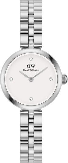 A quartet of crystals glimmers on the minimalist dial of this slim watch that elevates any ensemble.