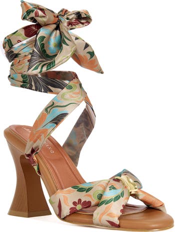 - Wraparound ankle strap with tie closure