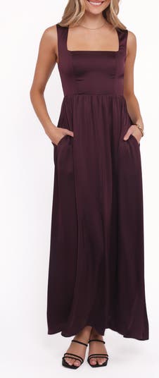 Bring contemporary sophistication as your plus-one with this A-line dress featuring a smooth satin bodice and gently gathered skirt.