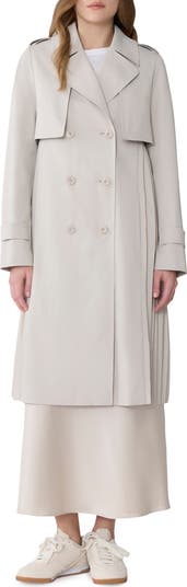 Refine your cold-weather wardrobe with this water-repellent trench coat cut in a classic double-breasted silhouette with a crisply knife-pleated back panel cascading from the storm flap.