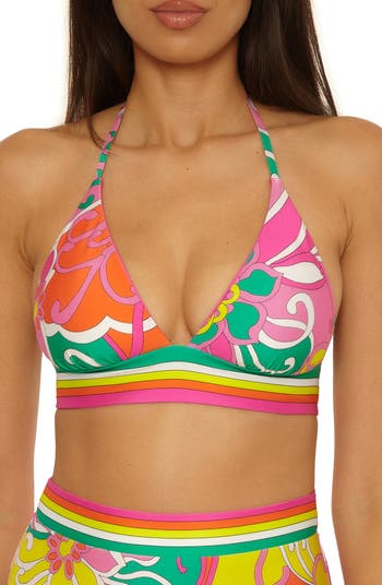 A contrasting underbust band pops on this reversible bikini top made with fully adjustable ties tipped with gleaming bamboo-inspired beads.