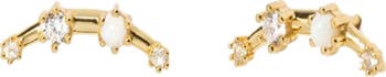 Add a touch of celestial elegance to your look with these Elara Opal & Topaz Curved Crawler Earrings. Delicately crafted in sterling silver with a luxurious gold plating, these earrings feature a stunning combination of sparkling topaz stones and a radiant opal at the center.