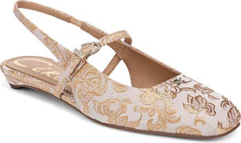Shimmery floral jacquard instantly elevates the look of this slingback flat complete with a contemporary-chic square toe.