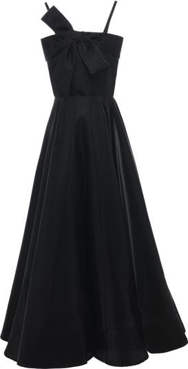 Striking in silhouette and rich in texture, the Black Elara Bow Gown is a masterclass in evening elegance. Its fitted bodice is framed by slender straps and anchored by a dramatic oversized bow, adding sculptural flair to the neckline. The full-length skirt flows effortlessly, crafted from lustrous fabric that catches the light with every step—perfect for galas, formal events, or any moment that calls for timeless sophistication.