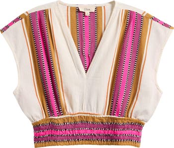 Bring new style to your resort-ready rotation with this cover-up crop top made from a supersoft cotton blend with a bold stripe pattern.