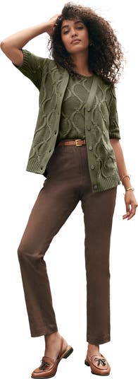 The Jessica London plus size women’s Elbow Sleeve Cable Cardigan is the perfect layer for transitioning between the seasons. It features a flattering Y-neckline and elbow-length sleeves, and perfectly pairs with our Sleeveless Cable Shell.