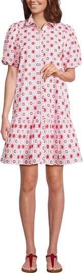 An adorable option for warm summer months, this eyelet shirtdress is a charmer. Made of woven cambric cotton, which is lightweight with a slightly crisp feel and is naturally breathable. Fun bubble sleeves and ruffled hem give it a flirty look. Wear it with or without the belt for an optional look.