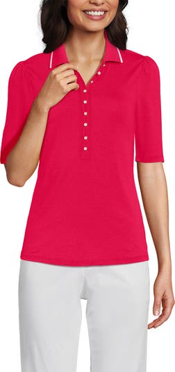 Your favorite silhouette gets a bit dressed up with decorative buttons. This polo is a knit jersey that combines cotton, modal, and spandex for soft comfort, flattering drape. Soft enough for all-day wear but with enough stretch to keep its shape.