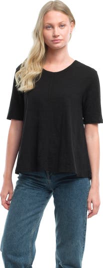 Elbow Sleeve Trapeze Top A breezy silhouette with effortless drape, designed in our signature slub fabrication for a soft, textured feel. Easy to style and easy to wear, this everyday top is a closet staple. Elbow-length sleeves Flowy trapeze shape for comfort and movement 100% Cotton Imported Machine Washable Model is wearing a size Small
