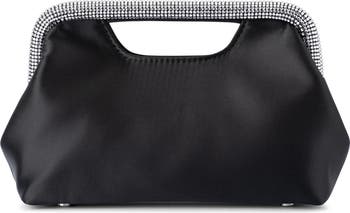Lustrous crystal embellishments illuminate the topline of a slouchy evening bag featuring an optional chain strap for convenient hands-free wear.