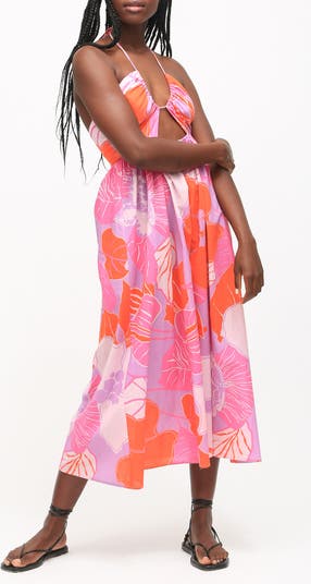 The brightest blooms splash across a cotton midi dress that's ready for summery fun.