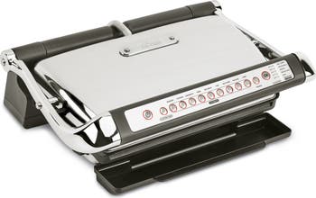 Additional features: Choose among the nine automatic programs—burger, poultry, sandwich, sausage, red meat, fish, pork, lamb, and seafood—or use the manual mode with four temperature settings to grill a variety of foods, including frozen ones. Removable, dishwasher-safe plates and a drip tray offer effortless cleanup. The extralarge capacity allows you to cook up to eight servings.