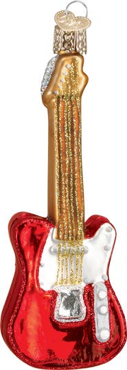 Add a rock-and-roll touch to your decorations with this classic six-string cast from fine, mouth-blown glass and highlighted with sparkly glitter.