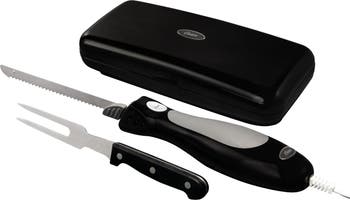 Introducing the Oster Electric Knife with Carving Fork and Storage Case, a culinary powerhouse designed to elevate your carving experience. Crafted with precision and durability in mind, its stainless steel blade slices through meats, bread, and more with ease. The sleek black design complements any kitchen aesthetic while the ergonomic handle ensures comfortable and controlled operation, making every carving task a breeze. The compact storage case keeps your knife and carving fork organized and protected when not in use, perfect for saving space in your kitchen.With a formidable 1200W of power and a corded plug, this electric knife delivers consistent performance for precise cuts every time. The removable blade offers convenient cleaning and maintenance, while the special carving tip enhances precision for intricate cuts. Plus, the inclusion of a dedicated carving fork ensures you have all the tools you need for a seamless carving experience. Upgrade your kitchen arsenal with the Oster Electric Knife, a reliable companion for culinary enthusiasts and professionals alike.