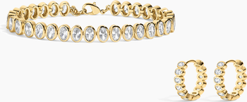 Love it More, With Layers Fast track to feeling put-together: the Champagne Bracelet + Hoops duo shines with gold-set oval crystals, adding sparkle and refinement to any outfit.