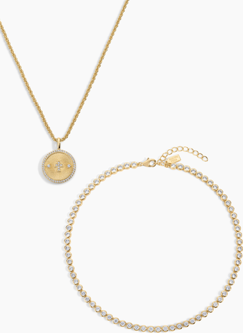 Low effort. High shine. A classic tennis necklace paired with a crystal-framed cross pendant. Just layer them on and go. Sets are sold at a 10% discount, already included in price