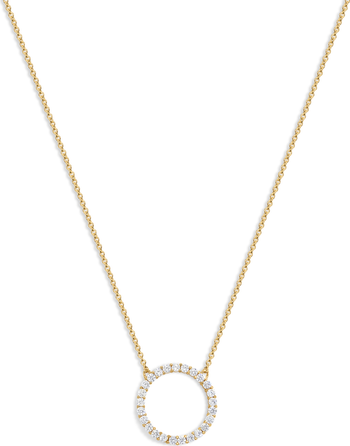 This? Oh, it just elevates everything. The Inner Circle Necklace is a dainty chain, a gold circle, a subtle layer of stones.