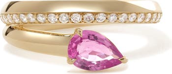 Round-cut pavé diamonds and a pear-cut pink sapphire bring exquisite sparkle to this hand-polished coiled ring made from 14-karat gold.