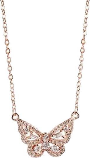 Elegant 18k Rose Gold Butterfly Pendant Necklace with Sparkling Cubic Zirconia Stones