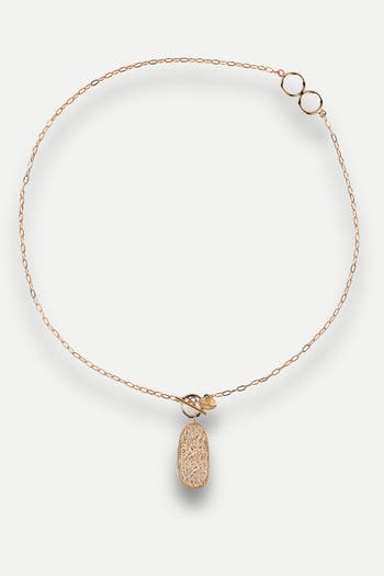An adjustable, fluid necklace with subtle texture and a polished finish. The extended length allows for versatile styling, whether worn alone or layered