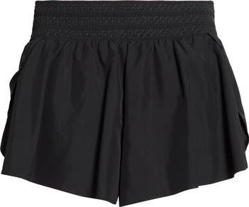 Smocked stitchwork on the waistband adds sweet style points to workout-friendly shorts designed to breathe, wick moisture and move with you.