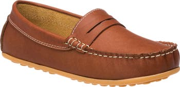 A grippy driver sole keeps your little one grounded in this handsome leather driving loafer punctuated with contrast stitching.