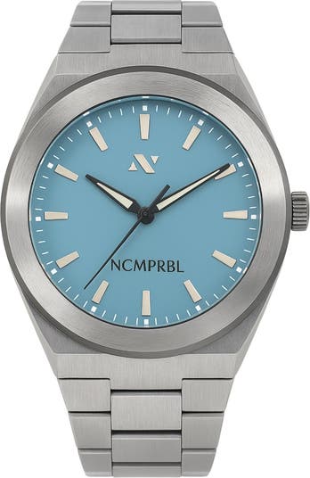 - Swiss Ronda 763 quartz movement Case size: [42mm] Stainless steel case and bracelet Sapphire-coated crystal Water resistance: 5 ATM Dial color: Blue Azurite Bracelet finish: Hushed Silver Deployant clasp Limited production Manufacturer’s 60-month warranty